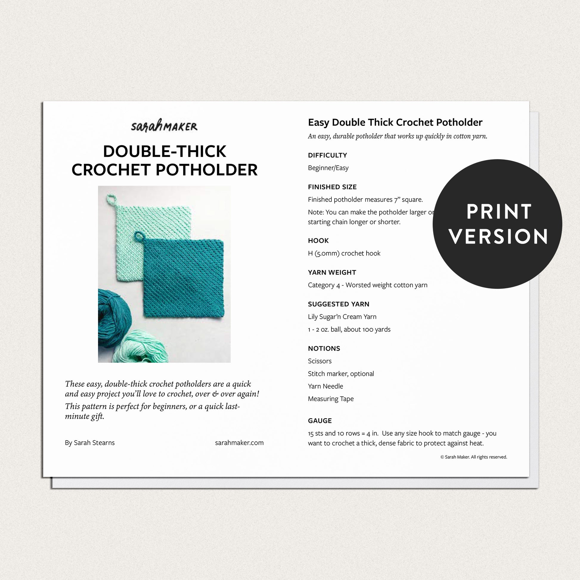These easy, double-thick crochet potholders are a quick and easy project you’ll love to crochet, over and over again. This free pattern uses a simple combination of basic crochet stitches, so it’s easy to learn and quick to make. And, since the potholders are made out of cotton yarn, they’re durable and machine washable.