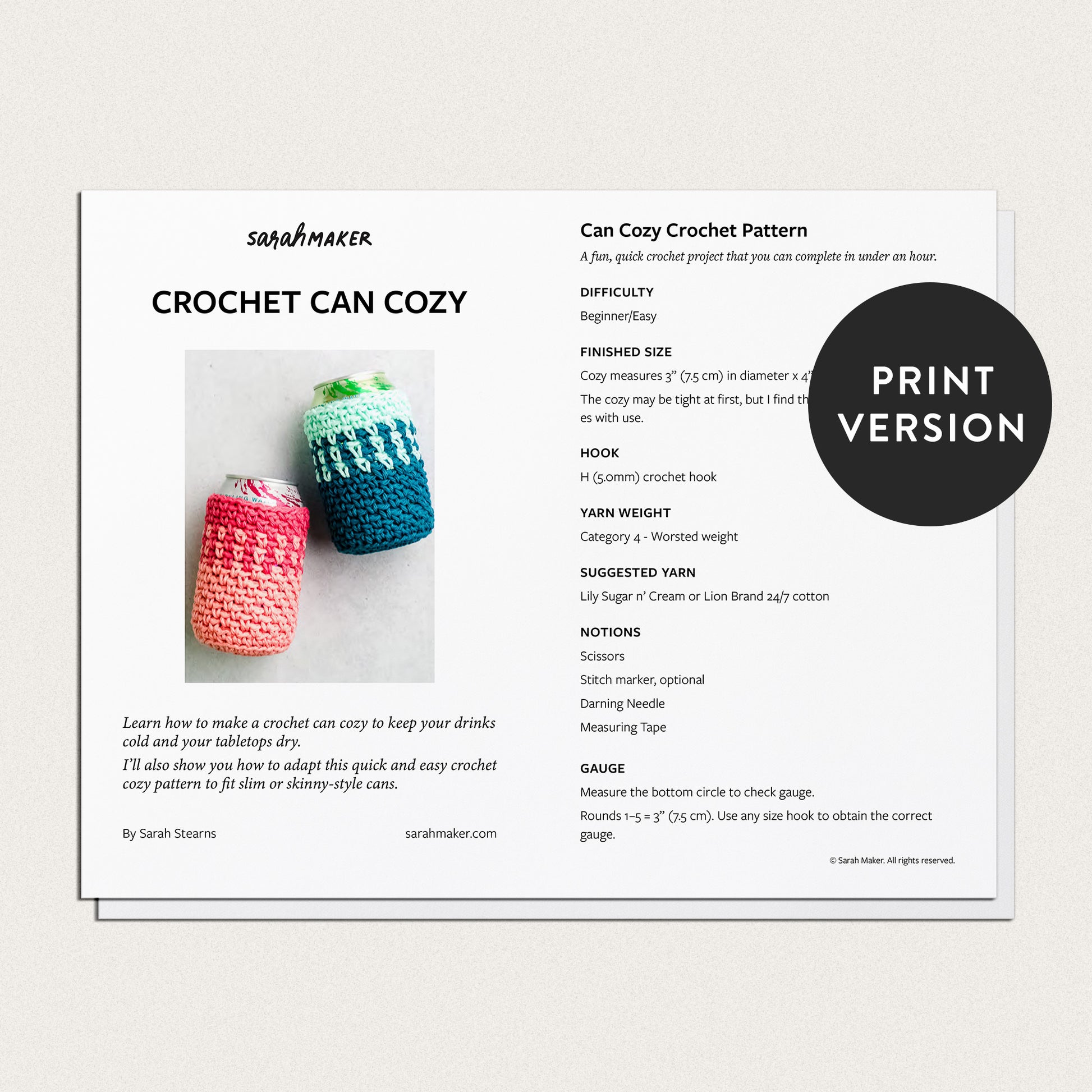 This product is a digital PDF pattern file, meaning you're purchasing the instructions to create the item, not the finished product itself. Please note that digital files cannot be returned or exchanged.